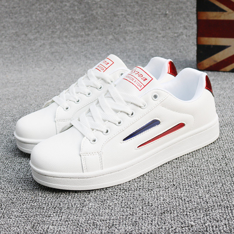 White, black, and red is one size larger than the sneaker shot. White, red, and blue are one size larger than the sneaker shot.