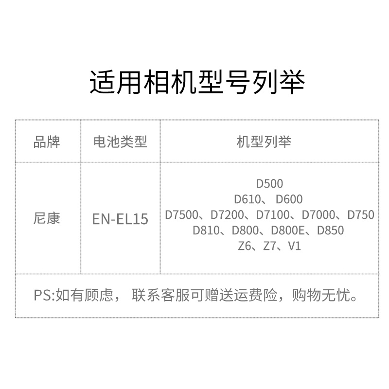 EN-EL15 Battery*1 EN-EL15 Battery*2 Smart display number charger*1 Smart display number charging set