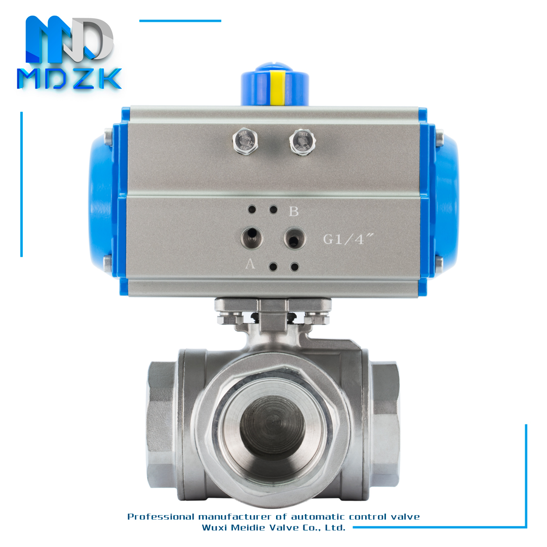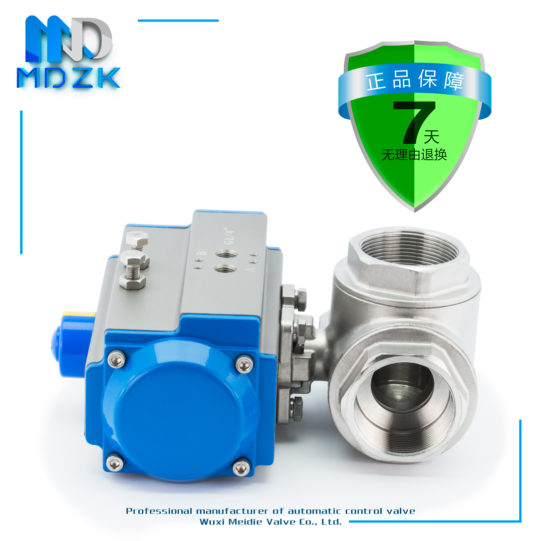 MDZK-AT-Q614 5F-16P pneumatic three-way wire buckle stainless steel corrosion-resistant T-type L-type ball valve