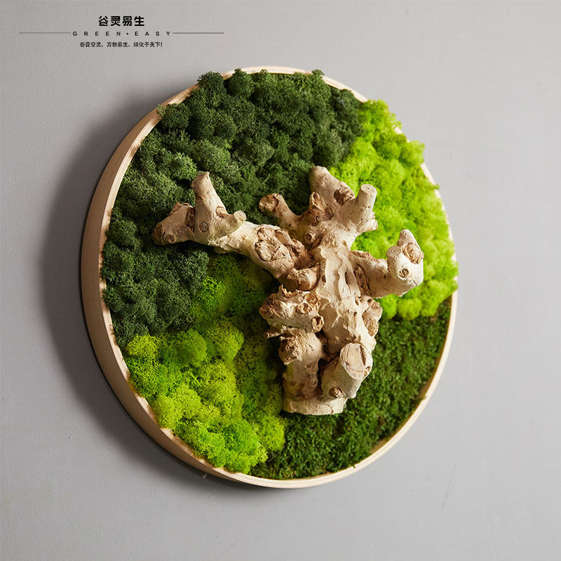 Wall decoration Hanging moss disc log wall hanging creative background wall Living room bedroom Chinese three-dimensional hanging wall