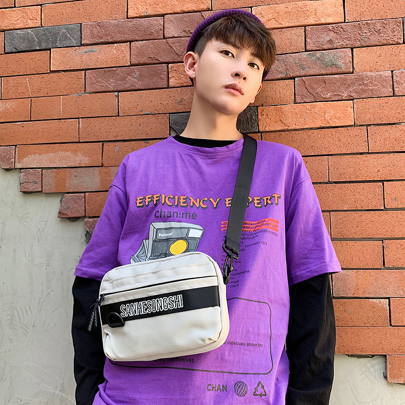 Hong Kong style cross bag Korean version trend single shoulder bag male canvas messenger bag student sports backpack boy small bag shoulder bag