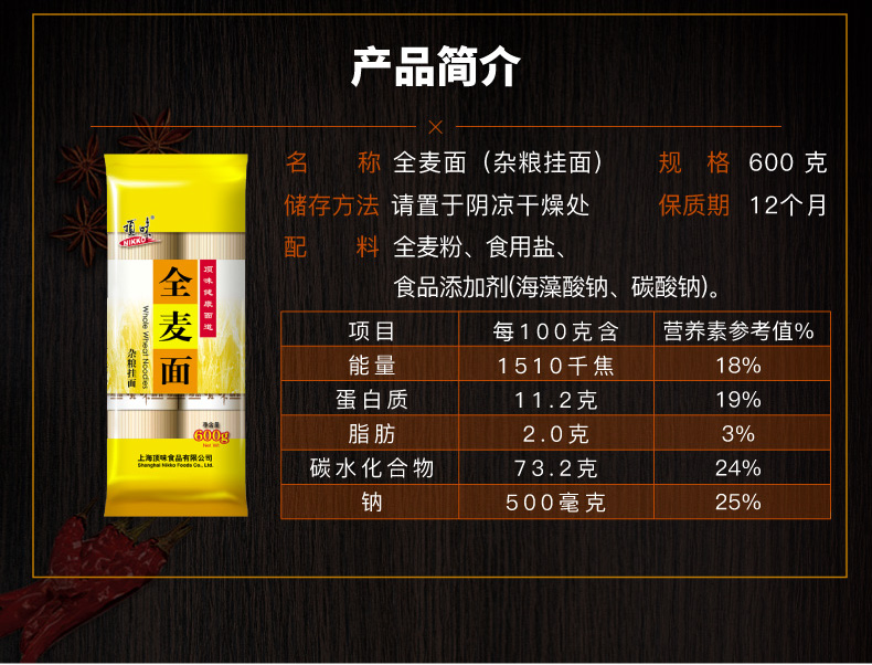 Top Taste Full Wheat Noodle Hanging Face 600g * 4 Bags Grocery Cereals Cold Noodles Chewy Wholewheat Nouri healthy noodles