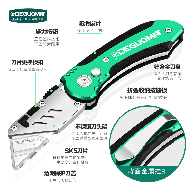 Menette folding utility knife industry wallpaper cutting wallpaper tool holder heavy thickened titanium alloy trapezoidal electrical tool knife