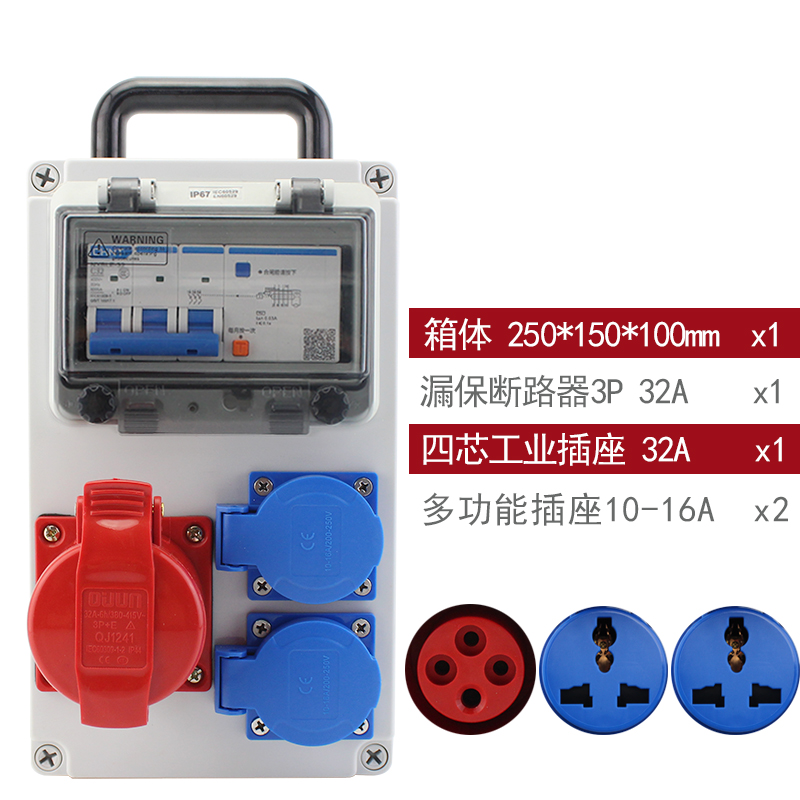 Portable industrial waterproof socket distribution box with leakage and empty switch solid wall outdoor overhaul charging multifunction socket