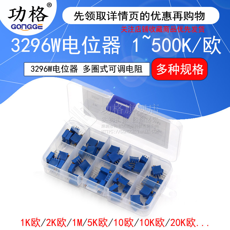3296W potentiometers 1K Euro 102 (5) 3296W potentiometers 1M 105 (5) 3296W potentiometers 2K Euro 202 (5)