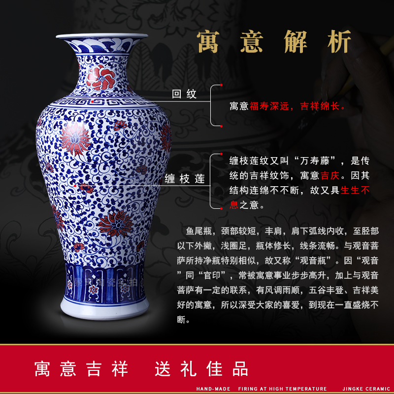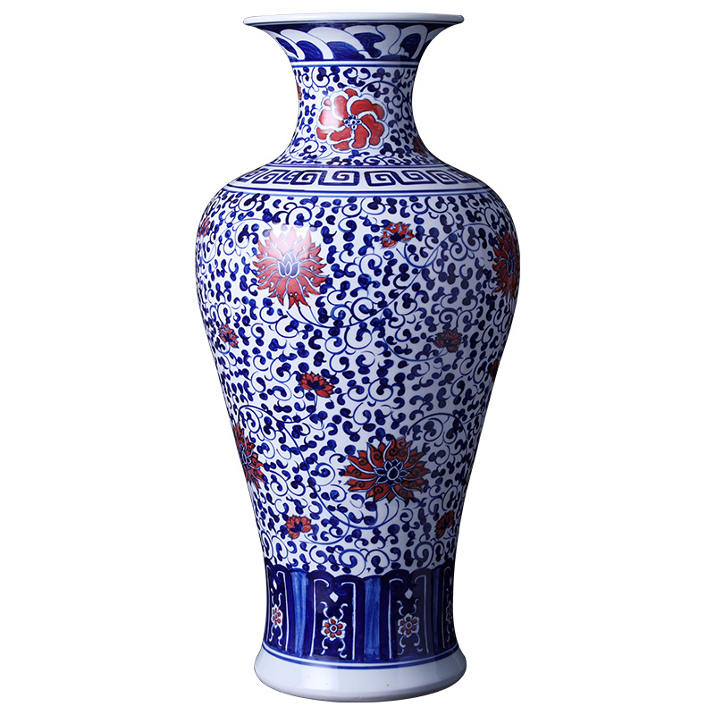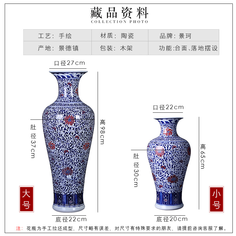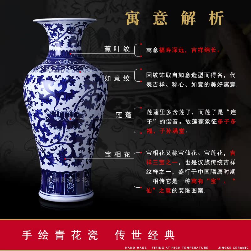 Jingdezhen ceramics hand-painted antique blue and white porcelain floor-to-ceiling large vase living room ornaments Chinese-style home decoration large