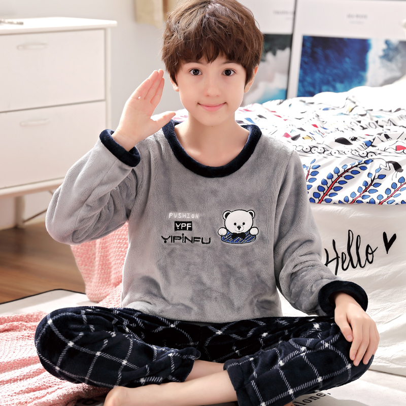Boy thickened flannel pyjamas 9-12-15-year-old boy's home Gaffer Enlarged Coral Suede Fatboy Suit