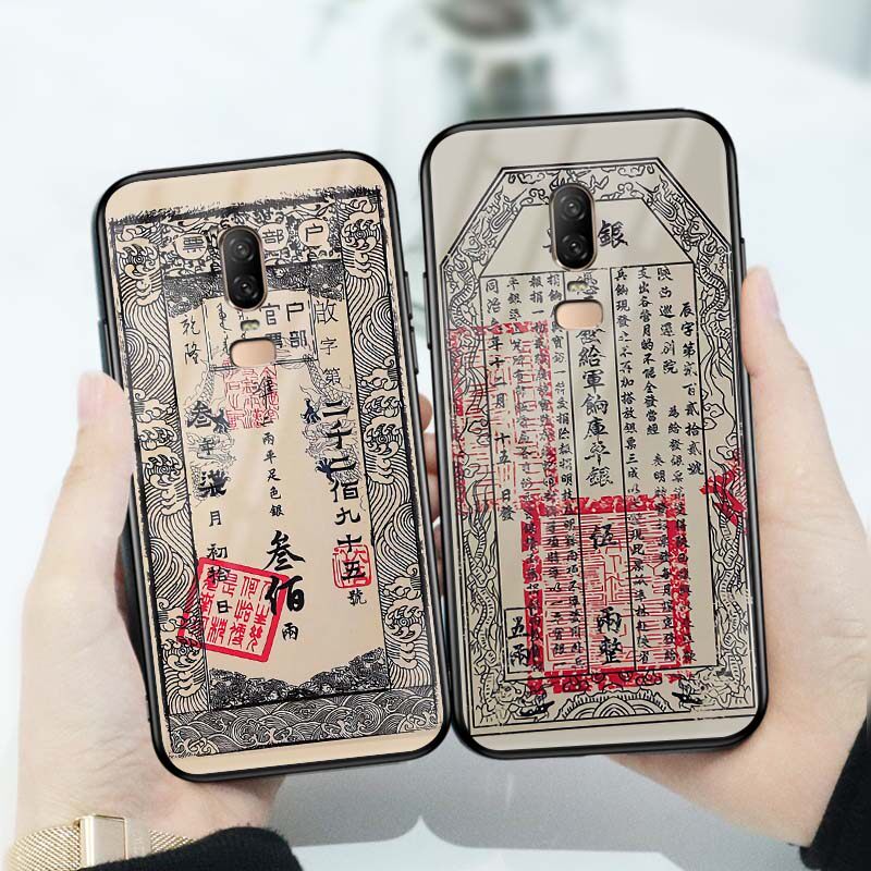 Suitable for a plus 7 pro 1 7pro 6 6t 5t glass mobile phone protection shell Chinese Fengxiang Creative Literature Couple Silver Ticket