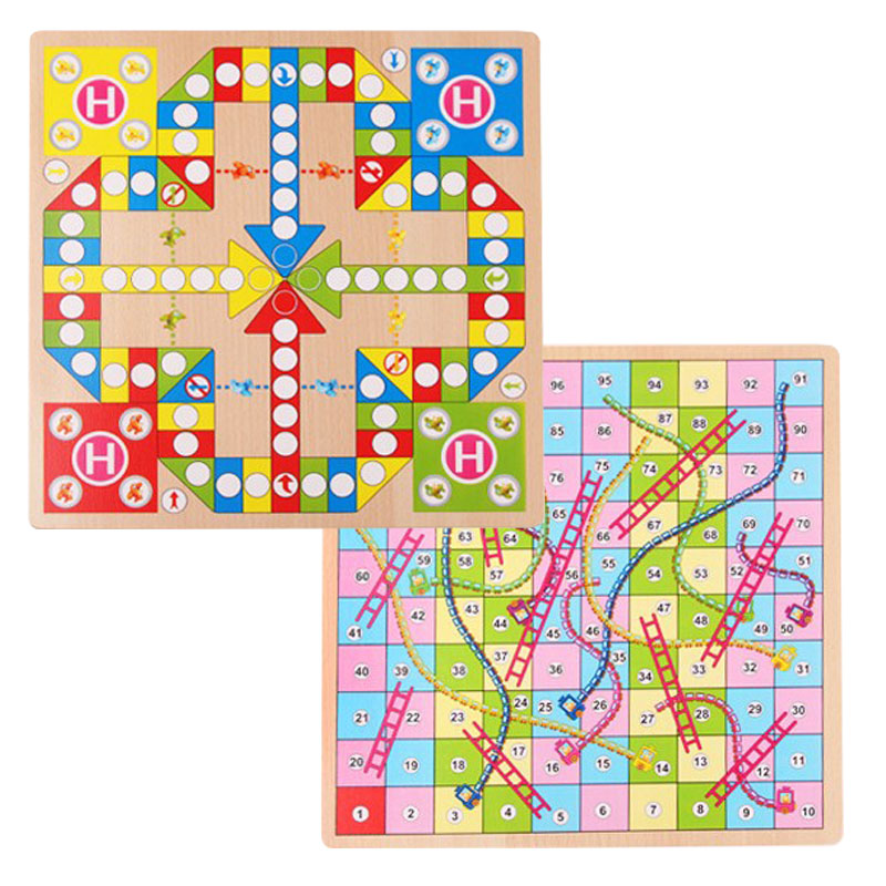 Two-in-one multi-function game chess student children's backgammon math chess Flying chess Train chess Colorful wood