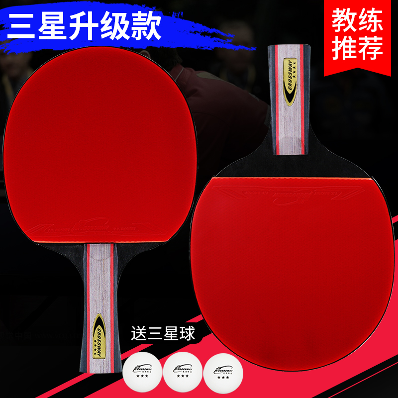Samsung four-star table tennis racket double shot set Double-sided anti-glue horizontal shot Student table tennis straight shot 2pcs