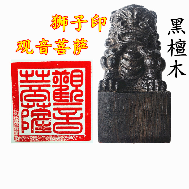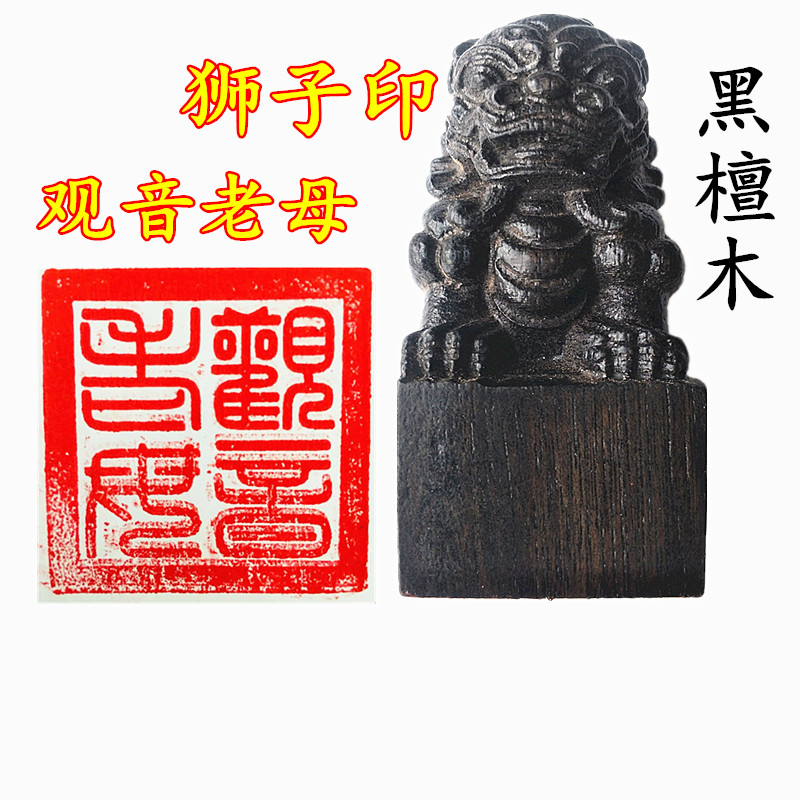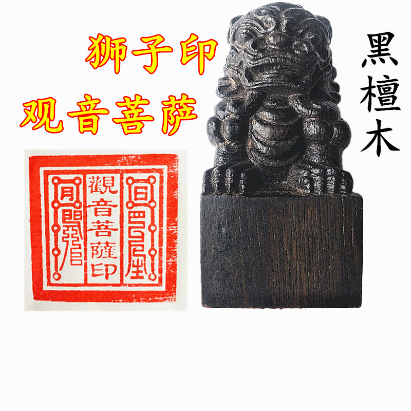 Taoist Taoist supplies seal French seal Avalokitesvara Bodhisattva Avalokitesvara Guanyin old female lion print ebony