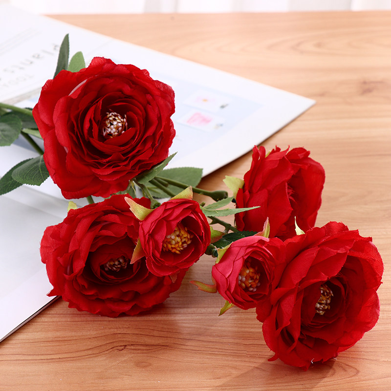 Large red tie wedding flower material simulation flower wedding field arrangement flower arrangement floral matching floral main wedding table flower decoration