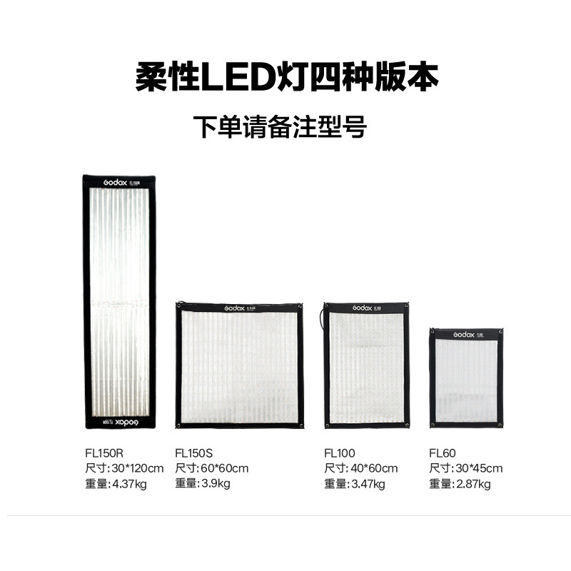 FL60 30 * 45cm Single light FL100 40 * 60cm Single light FL150S 60 * 60cm Single light FL150R 30 * 12