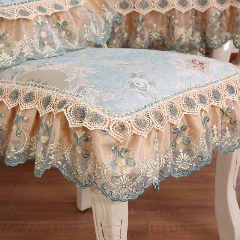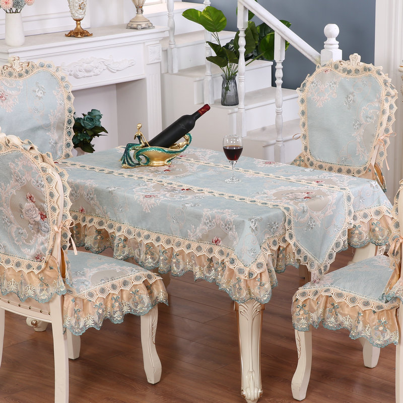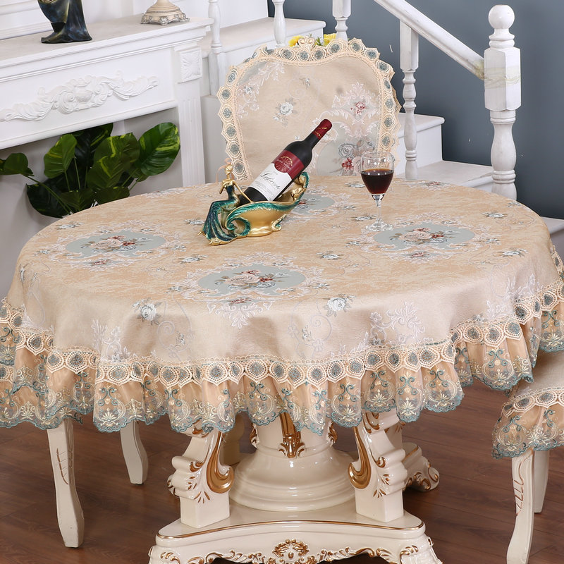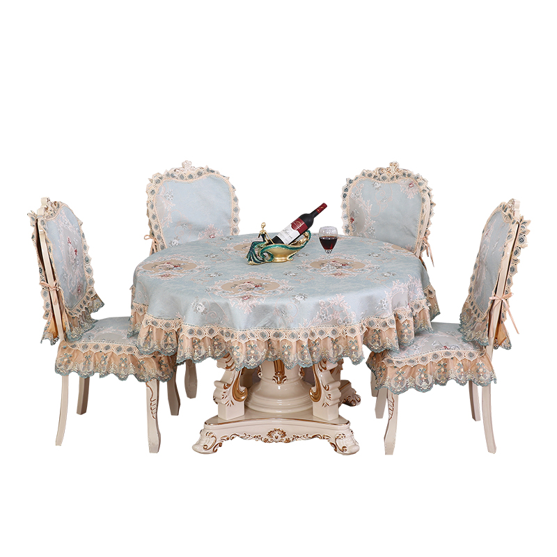 Round table tablecloth European lace light luxury simple dining table fabric chair cover rectangular tablecloth cushion set summer