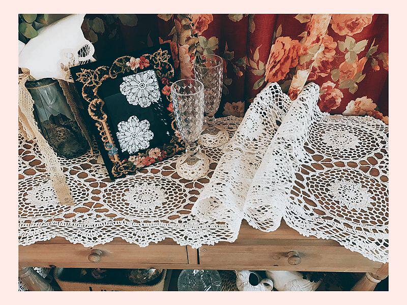 Throw foreign trade export original single European pastoral pure cotton handmade crochet tablecloth tablecloth flag Bed cabinet Shoe cabinet cover towel