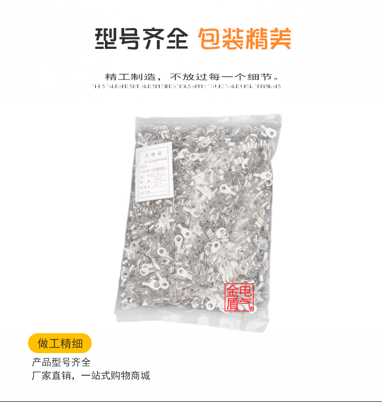 Terminal block UT cold-pressed end Tube type copper connector Wire connector Wire ear cold-pressed bare terminal