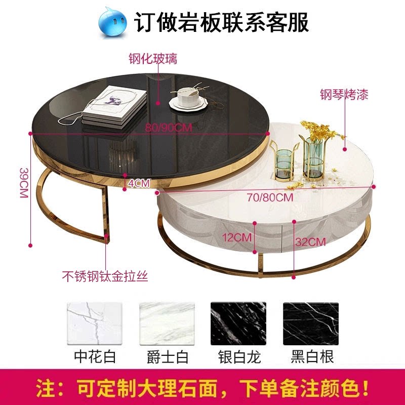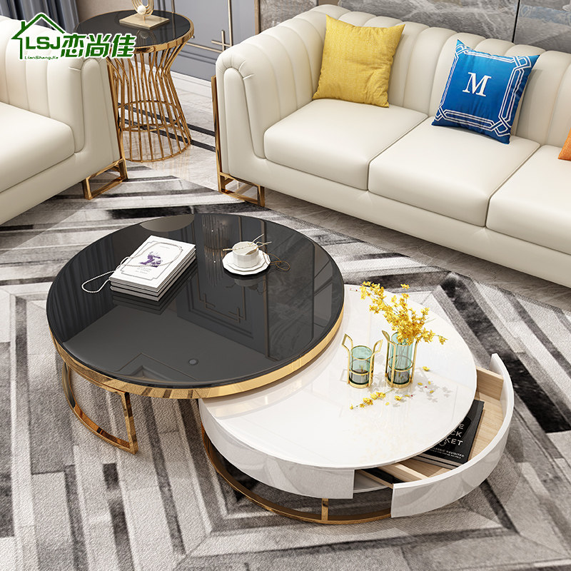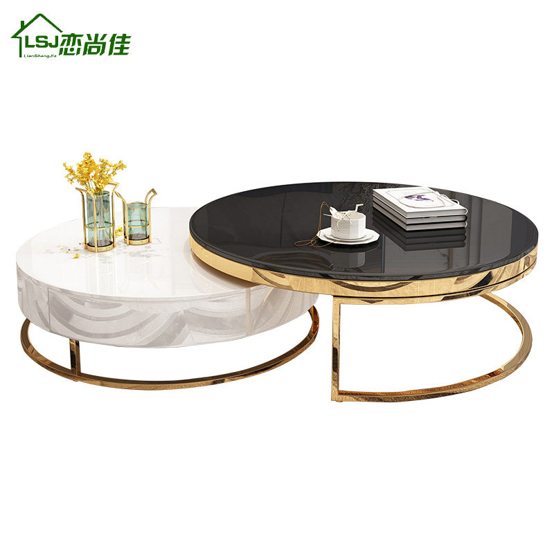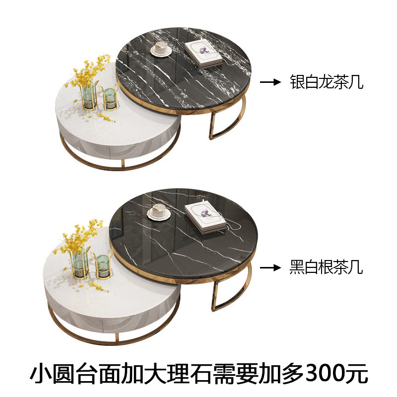 Light luxury Nordic postmodern minimalist small apartment black and white marble high and low round coffee table TV cabinet paint combination