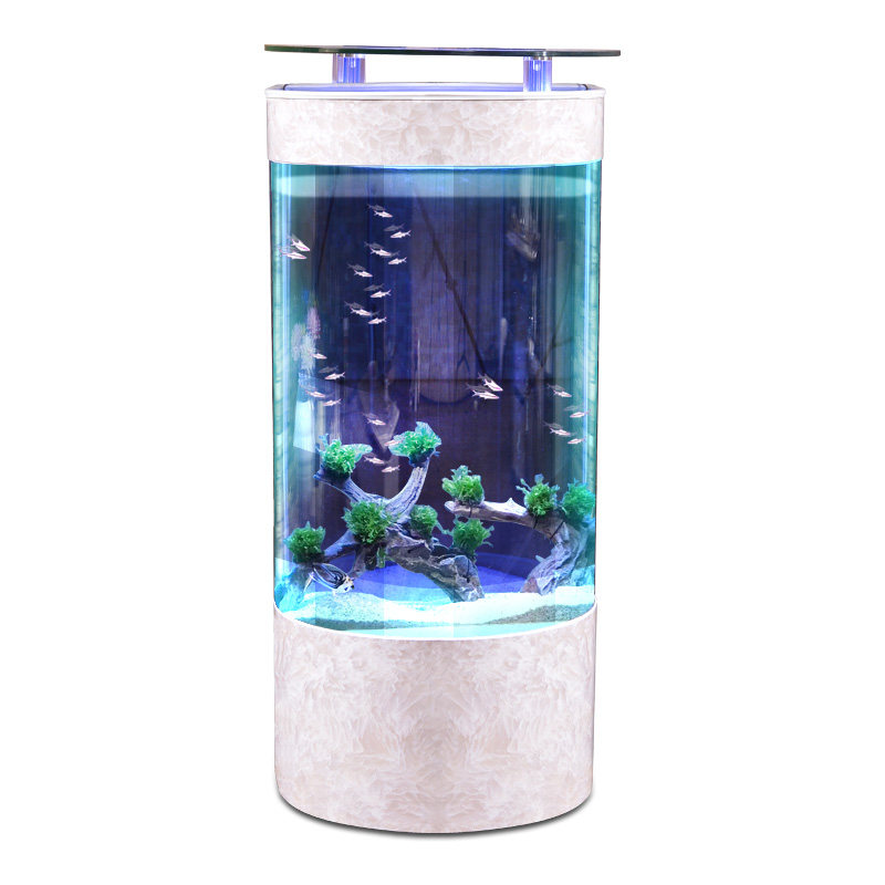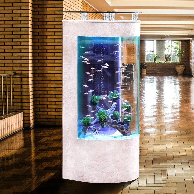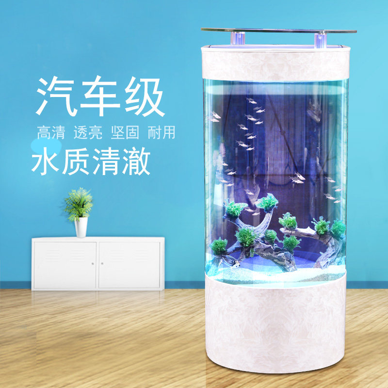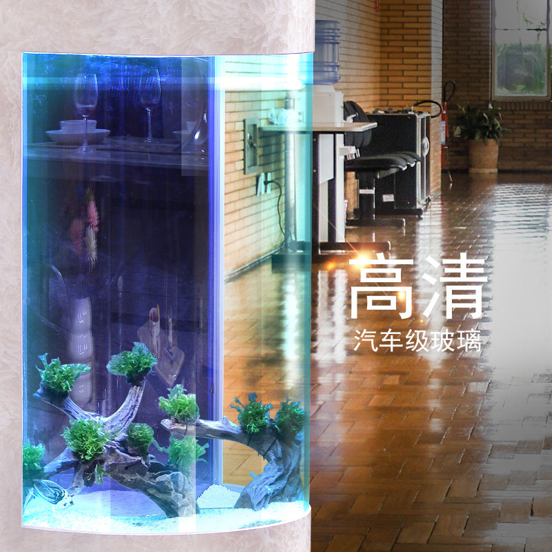 Light luxury semi-circular fish tank aquarium round living room floor-to-ceiling home ecological water-free office goldfish tank turtle