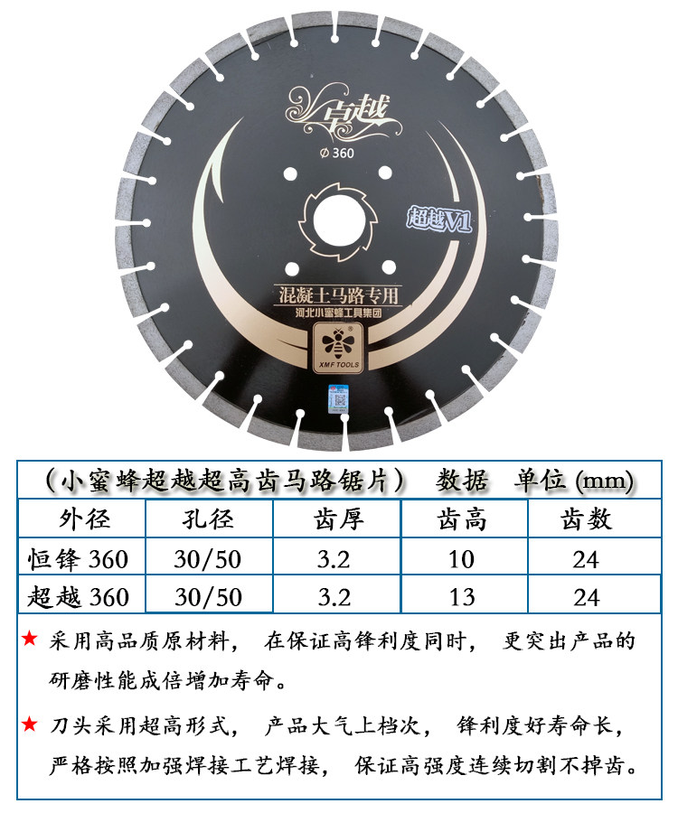 Little bee excellent concrete road cutting blade asphalt road cutting machine saw blade 300 360 410 500