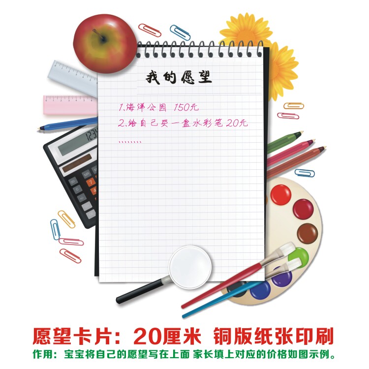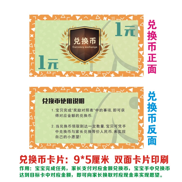 Baby's hands-on practice, children's self-care ability training, wish card, currency exchange card, reward comparison table