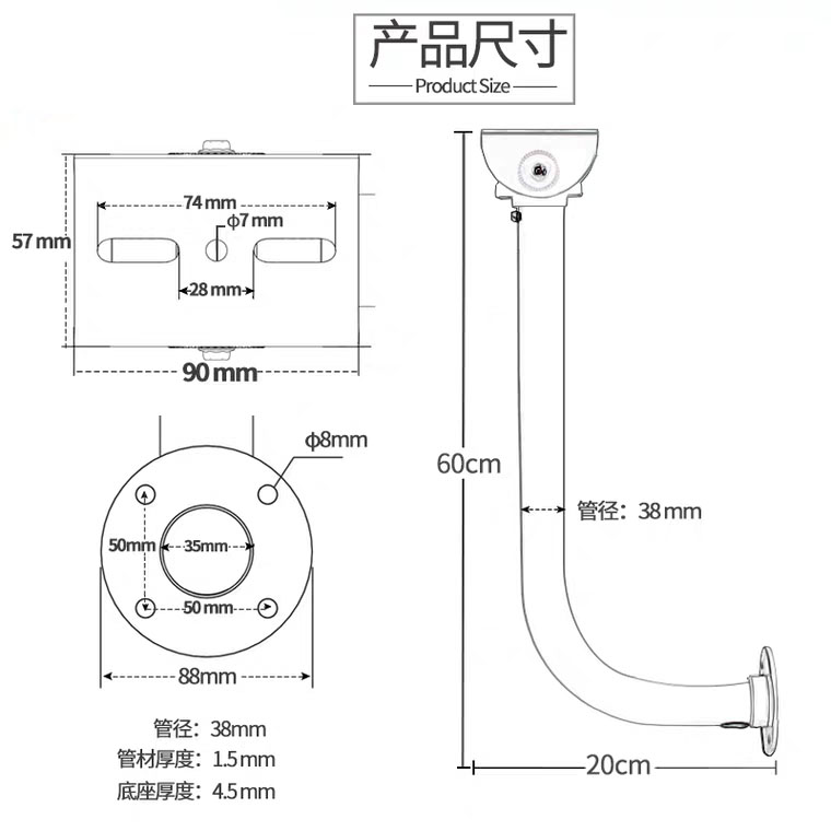 Monitoring bracket surveillance camera L type 20-50cm wall head full aluminum alloy elongation of universal bracket