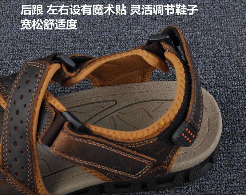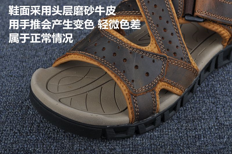Exported to Dubai summer men's first layer cowhide non-slip wear-resistant Velcro I casual beach sandals