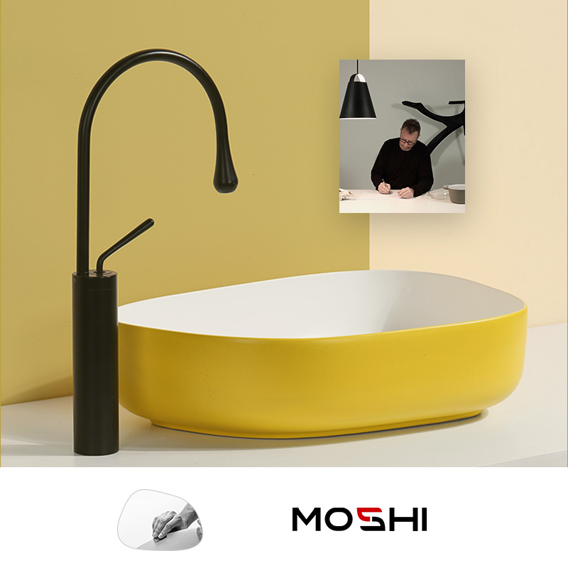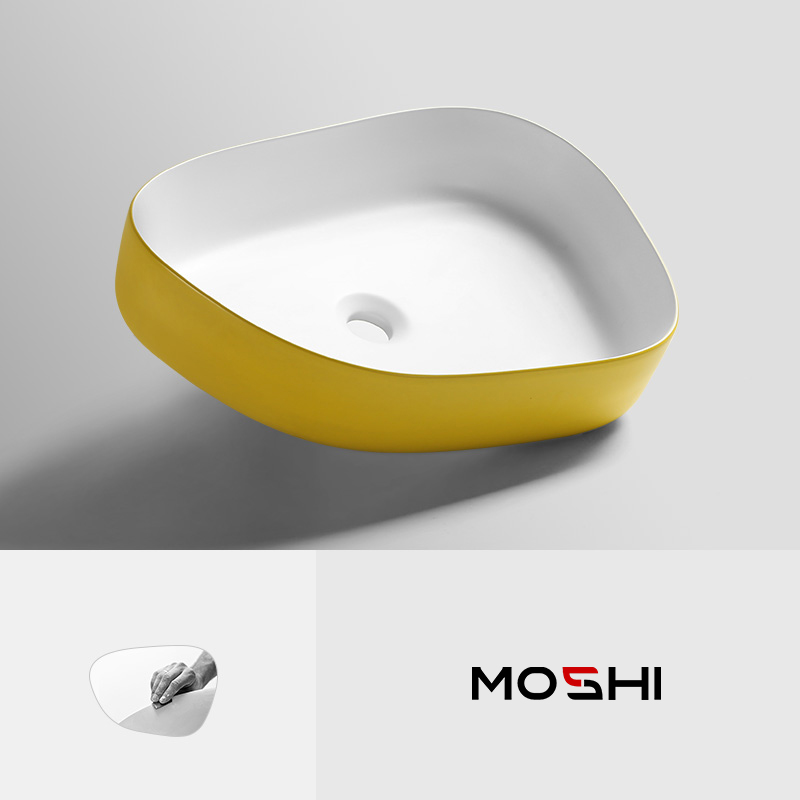 Nordic style matte yellow countertop basin ultra-thin ceramic INS dressing room washbasin washbasin triangle art basin