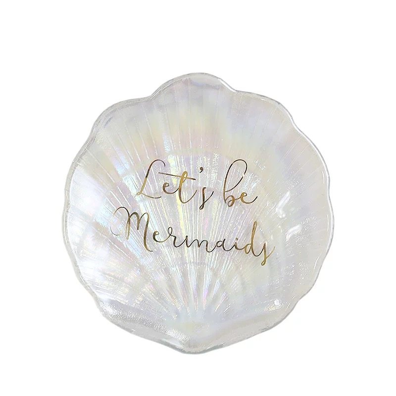 Cozyhome Yihe Retro Symphony Mermaid Shell Shaped Glass Plate Jewelry Storage Plate Nail Art Decoration Ornament