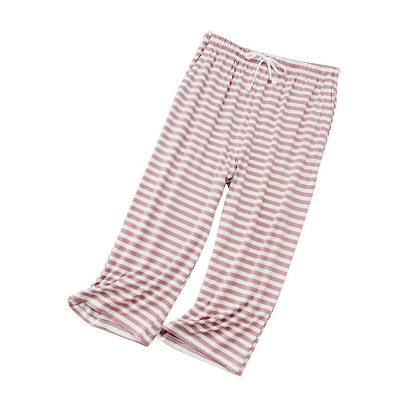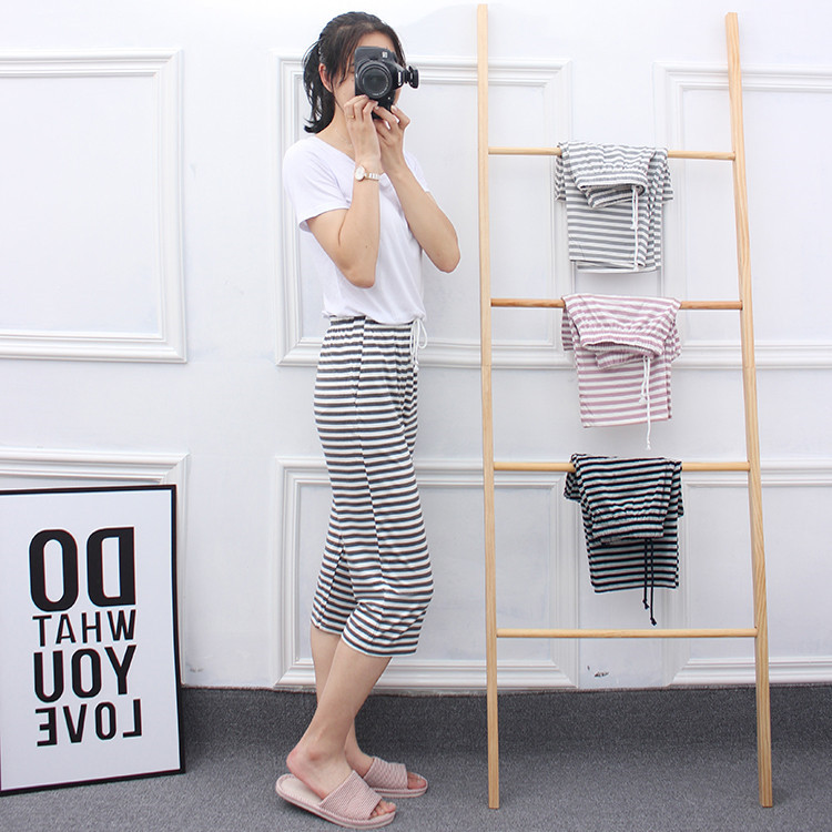 Long version sleeping pants in seven-pants Modale 50% Pants Woman Summer Large Size Loose Striped Shorts Mid-High Waist Home Pants