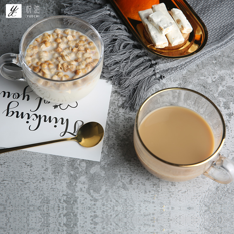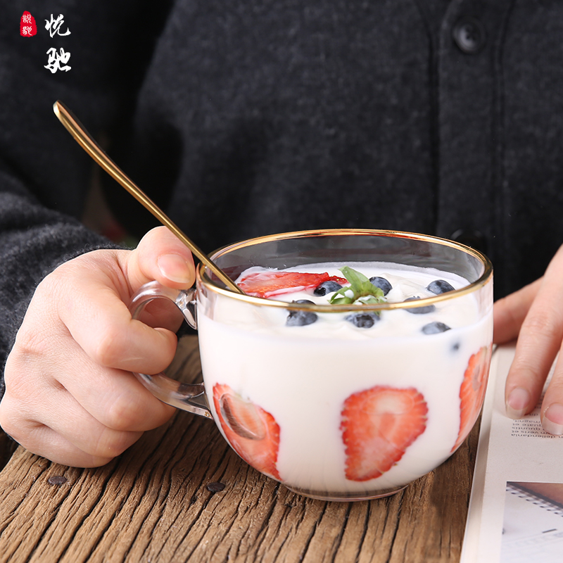 Phnom Penh glass water cup large capacity breakfast cup coffee cup oatmeal Cup Sour Milk Cup big belly Cup household ins
