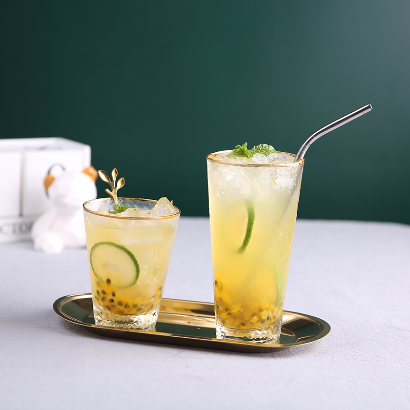 Phnom Penh 470ML (tempered glass) gold spoon gold tray transparent 470ML (tempered glass) Spoon (can be microwave oven) transparent steel cup 470ML spoon bamboo cover (