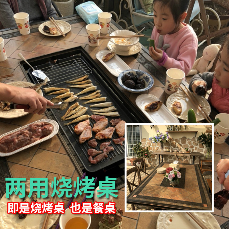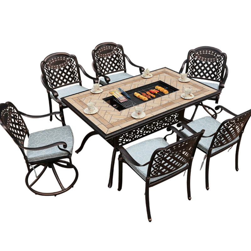 Outdoor table and chair combination cast aluminum open-air garden courtyard wrought iron home outdoor leisure smoke-free household electric barbecue