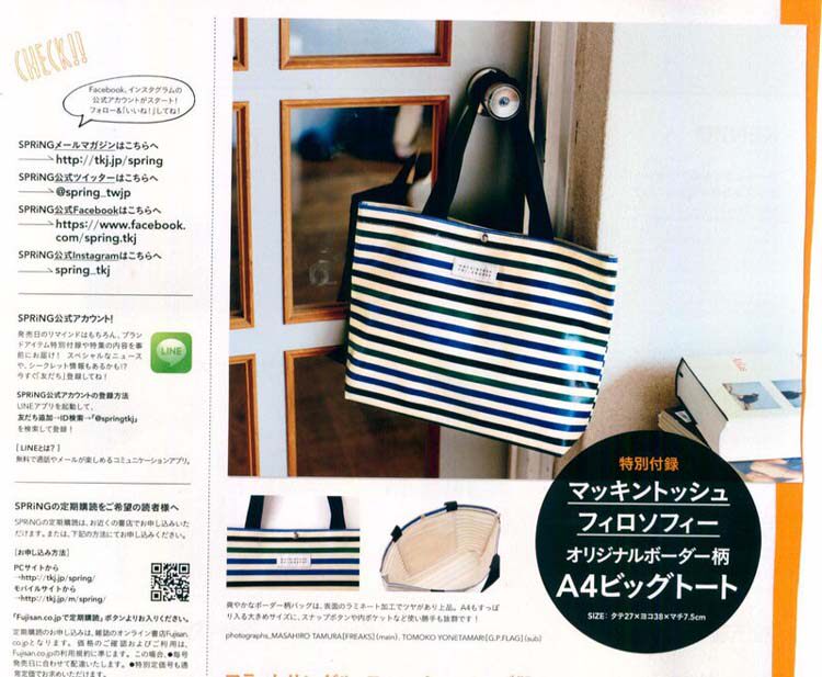 Japan spring June 2015 appendix can put A4 striped handbag shopping bag tutorial bag