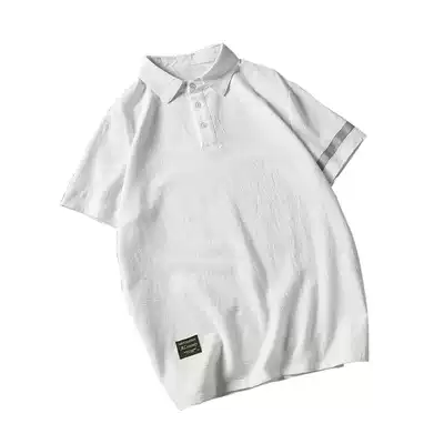 Summer Japanese sticker lapel polo shirt men's fat plus size loose Joker short sleeve fat Tide brand half sleeve