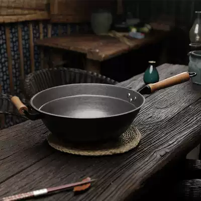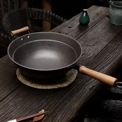3th generation deepened round bottom Tengzhou raw iron pot household old iron pot non-coated cast iron pot special wok