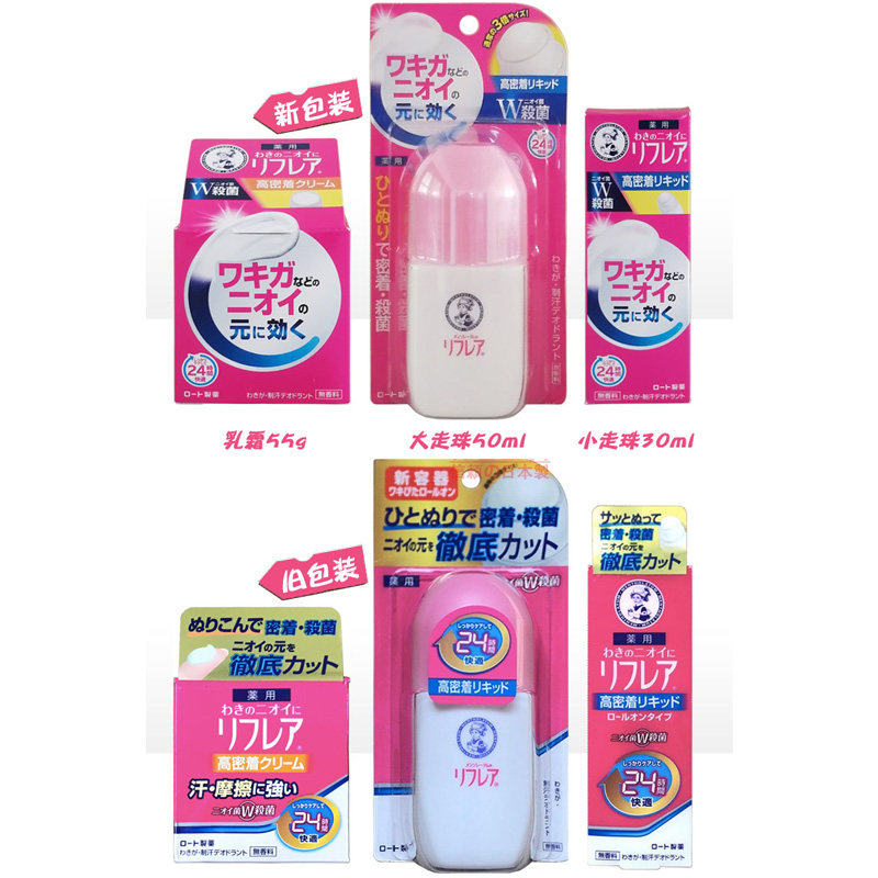 Cream type 55g Large roll-on type 50ml Gel type 30g Small roll-on type 30ml