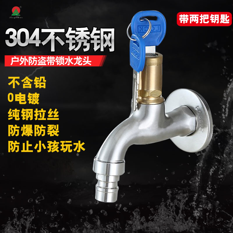 304 stainless steel household with lock tap tap key 4 points outdoor lock anti-theft faucet with key mop