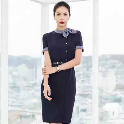 Work clothes dress women's summer short sleeves high-end temperament commuter slim bag hip sample house display center beautician work clothes