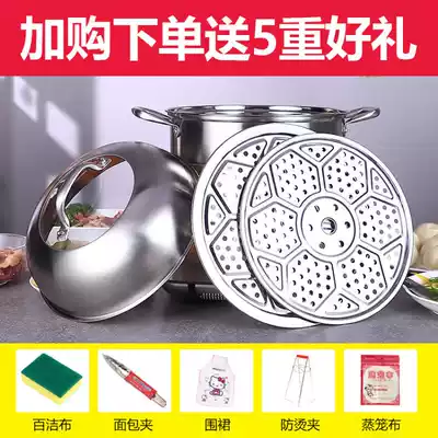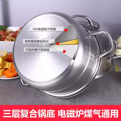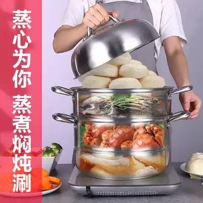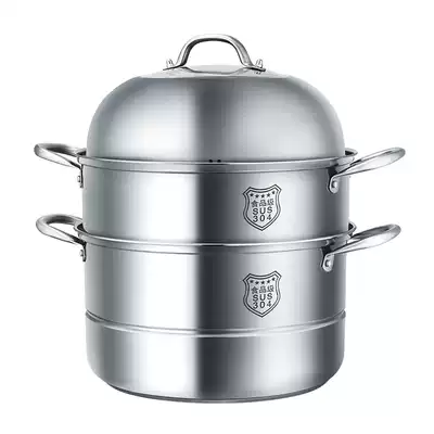 Steamer 304 stainless steel double 3 three-layer household thickened bottom induction cooker Multi-purpose steamer gas stove universal 26cm