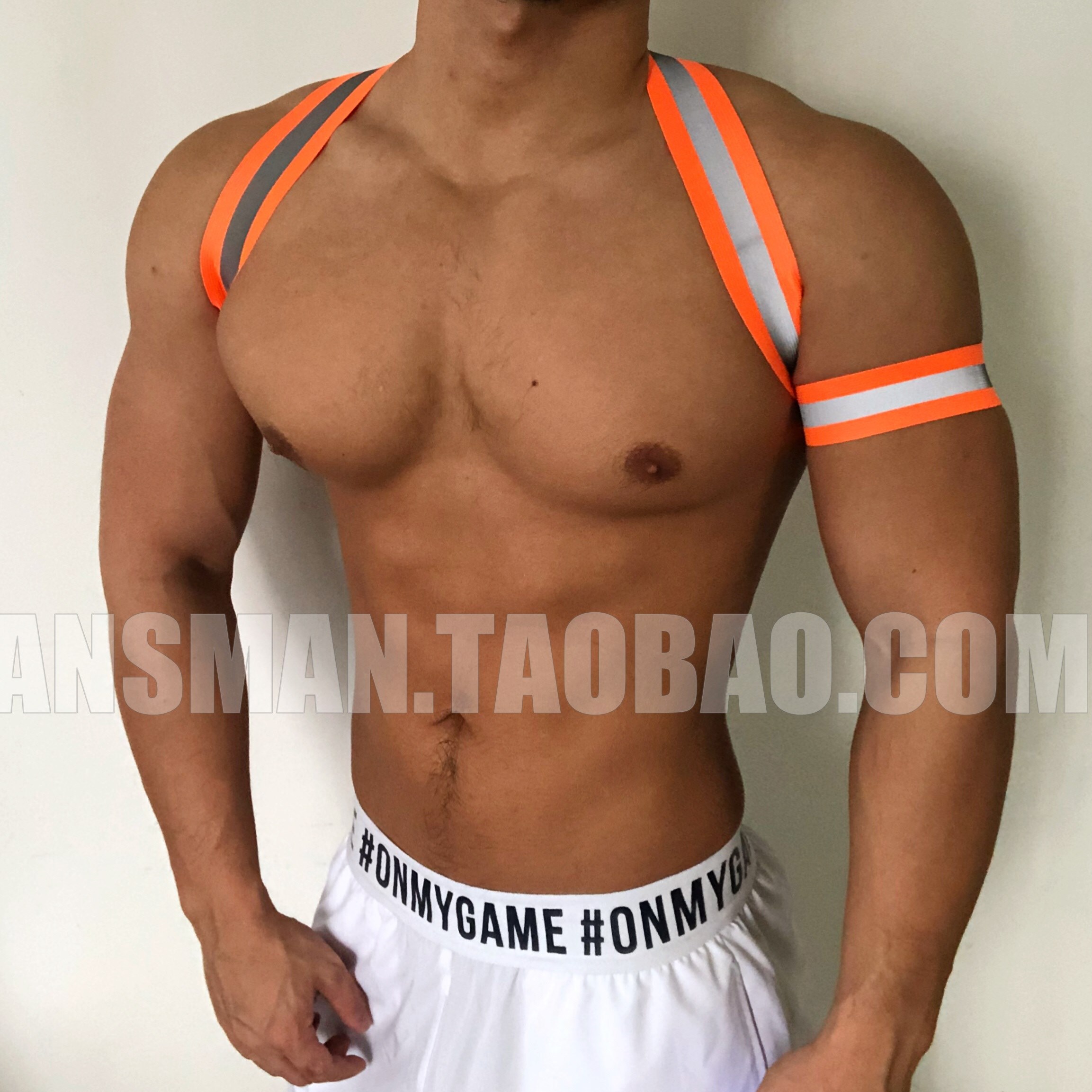 Nightclub Bar Male DS GOGO Colour fluorescent reflective chest with strap Canshoulder party Out of service W groveling white groin