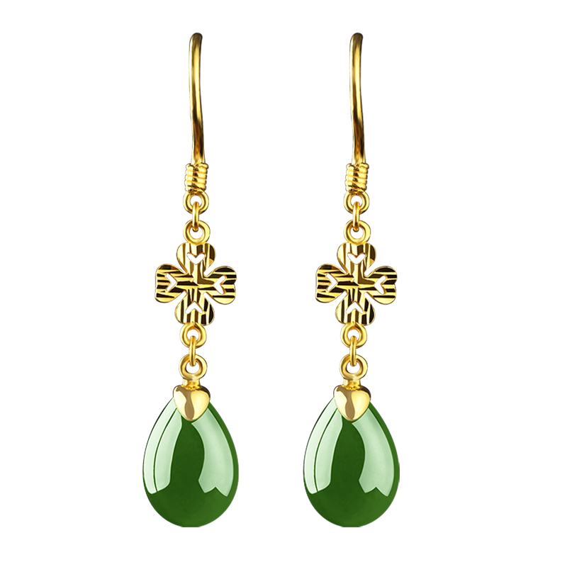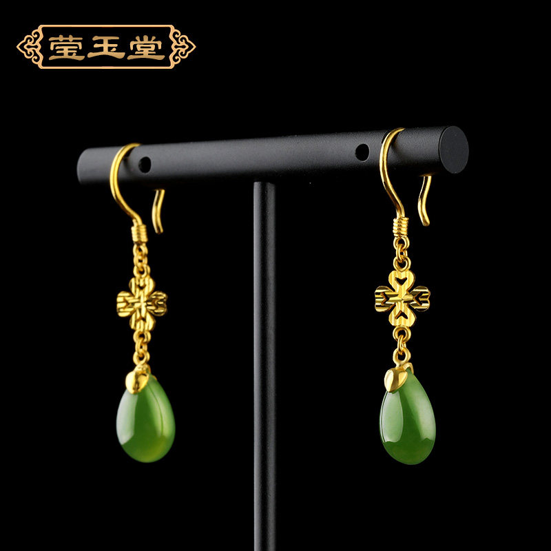 Xinjiang and Tian Beyu jade earrings female gold jade earrings 999 foot gold inlaid spinach green lady ear needle earbum