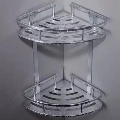 Multifunctional bathroom kitchen storage non-perforated triangle shower gel seasoning tank rack space aluminum pendant two-layer storage shelf
