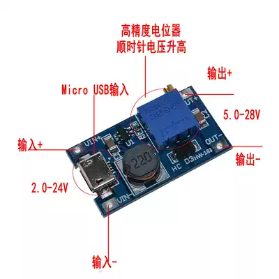 DC-DC boost module 2A board boost input 3 5V to L 5 9 12 28V adjustable volume MT3608