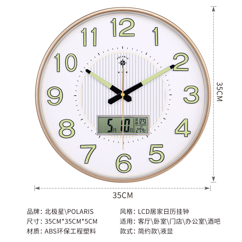 Polaris Night Photoelectric Wave Wall Clock Living Room Wall Clock Mute Bedroom Simple Clock Modern Electronic Home Quartz Clock