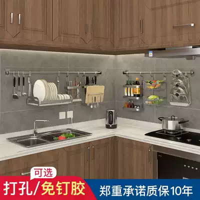 Kitchen shelf Stainless steel wall-mounted punch-free drain bowl rack Knife rack supplies storage shelf Hanging rod pendant