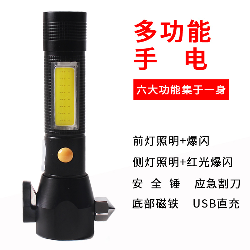 Fire truck multi-function safety hammer broken window hammer household flashlight cut flash USB charging six functions
