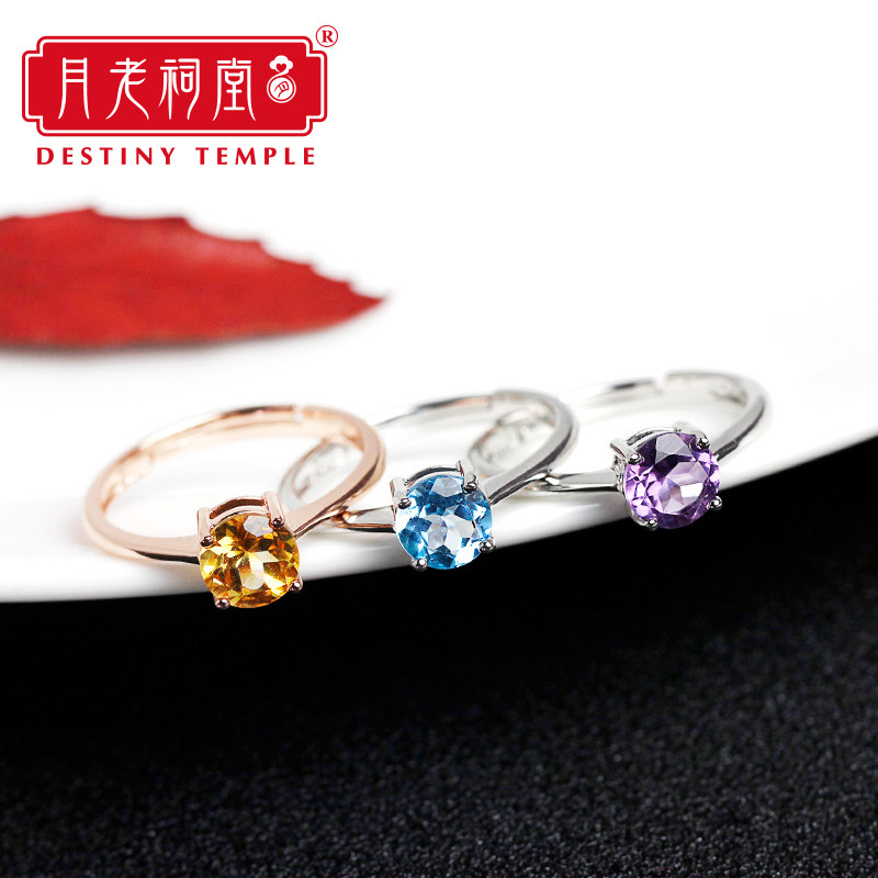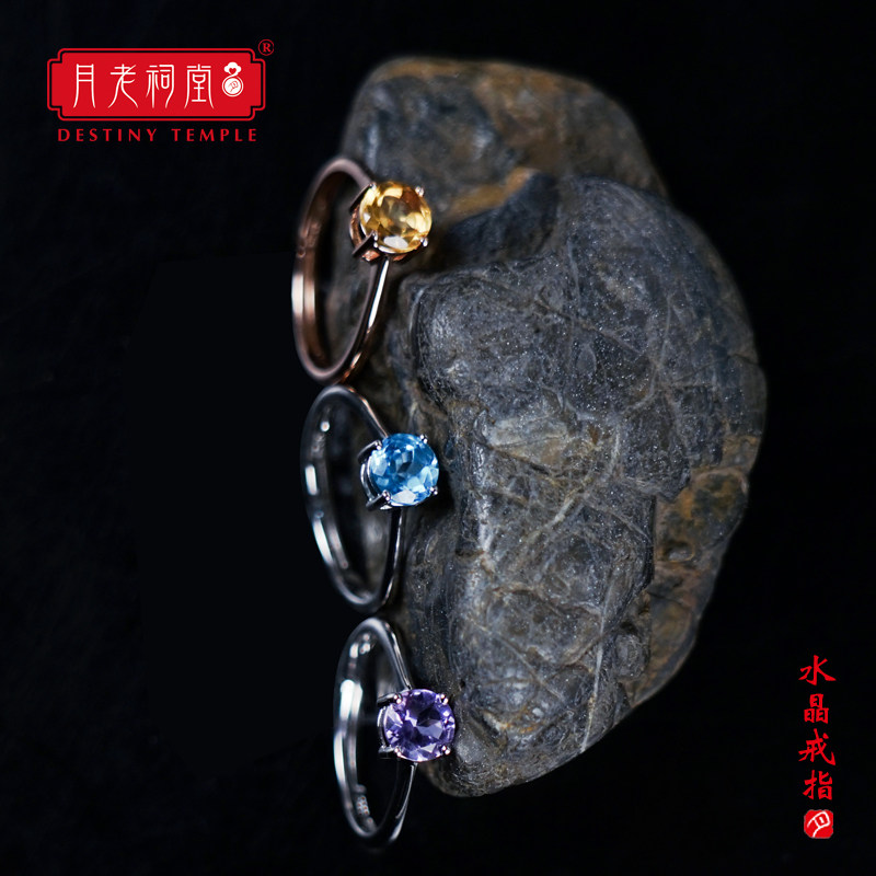 Yue Lao Ancestral hall natural citrine ring female fashion personality simple ins tide Amethyst Topaz ring finger