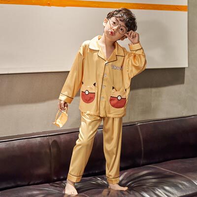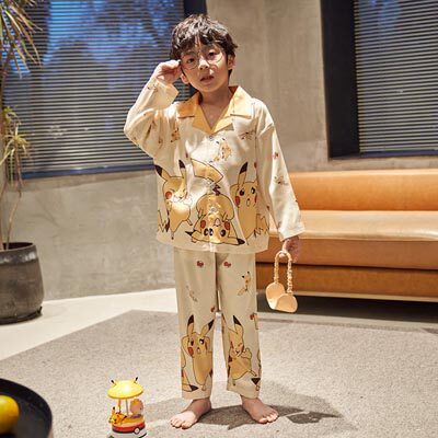 (Broken Yard clear cabin) Children's pyjamas girl boy spring autumn ice silk long sleeve baby Grand Tong Home Residence Suit Suit