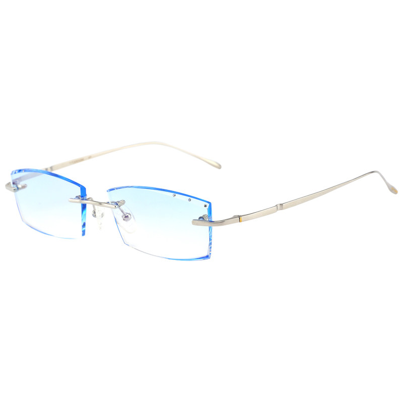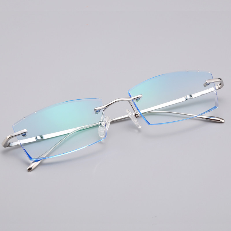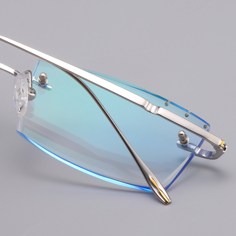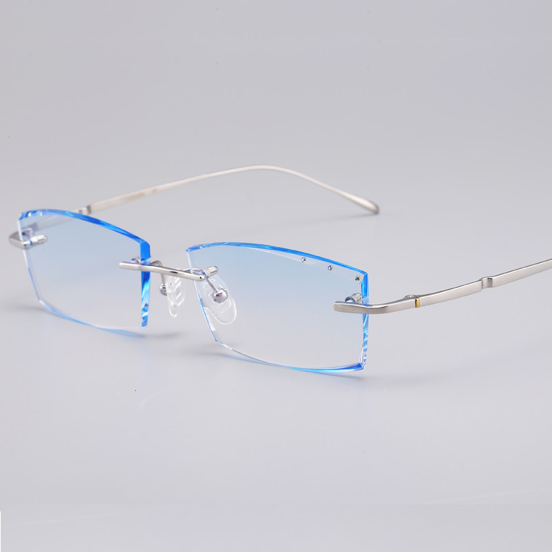 Back cool back custom no frame near view eye frame male large face pure titanium diamond cut edge discolored anti-blue light radiation glasses