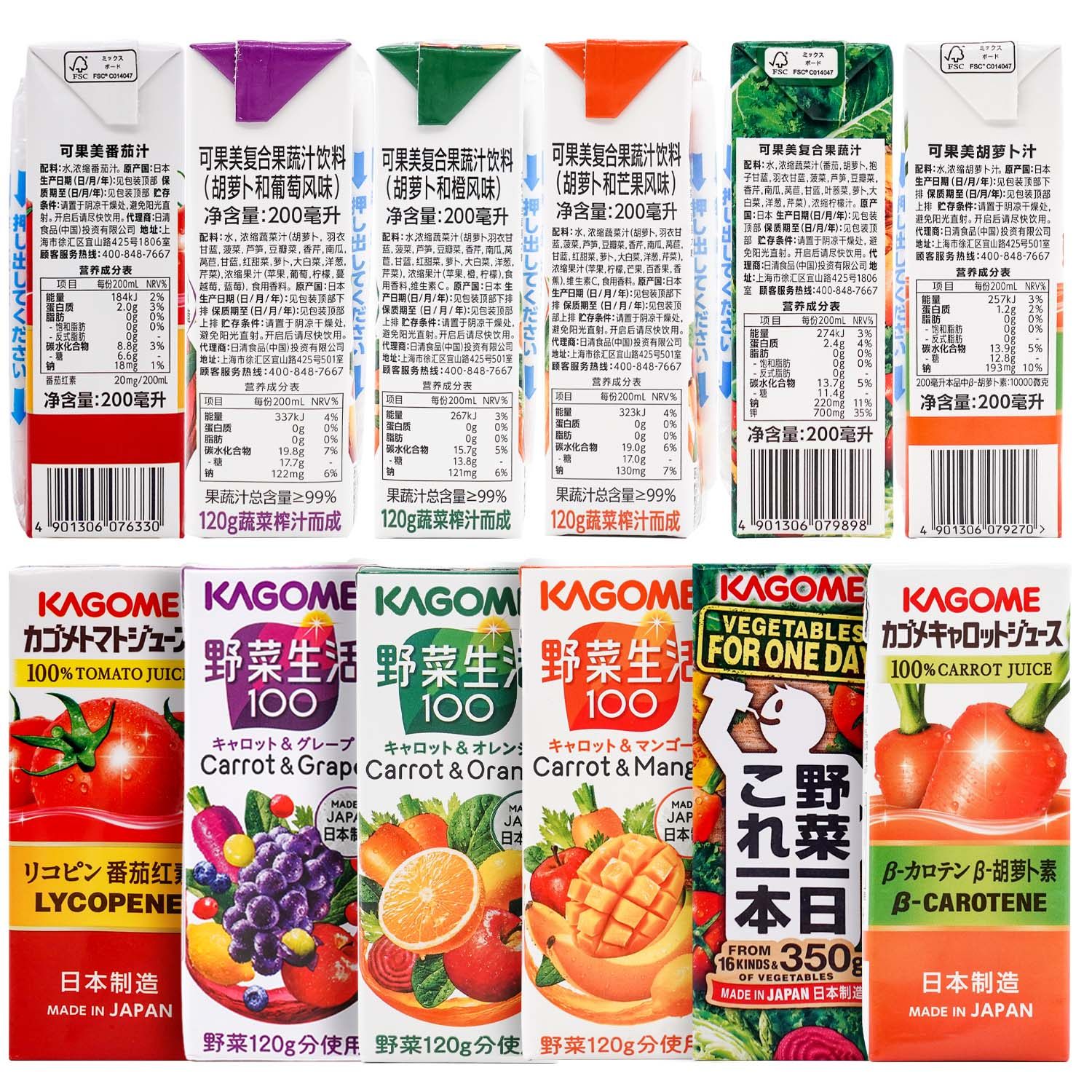 Japan kagome fruit and beauty mixed fruit and vegetable juice lightly cut off wild vegetable living vegetables 4 types of 200ml12 boxes